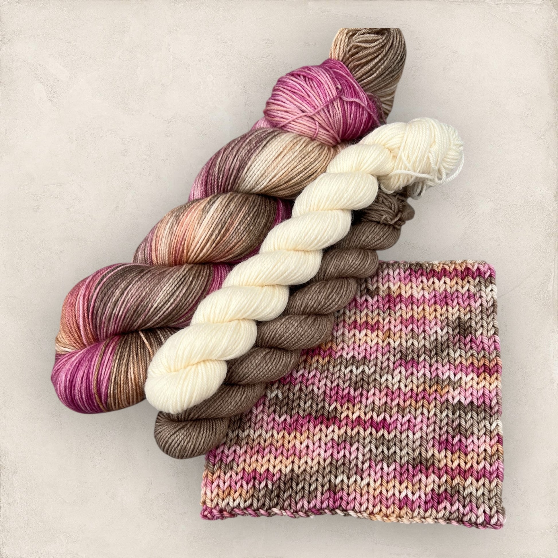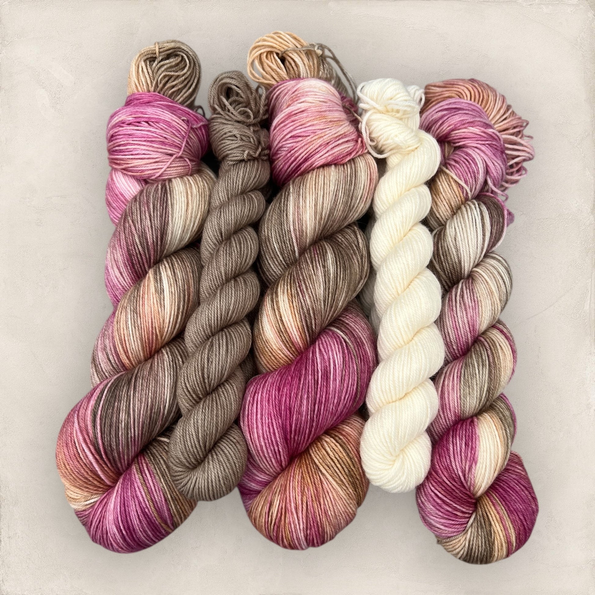 100g or 50g Skein - Berry Mocha - Deep Pink, Beige & Brown Variegated