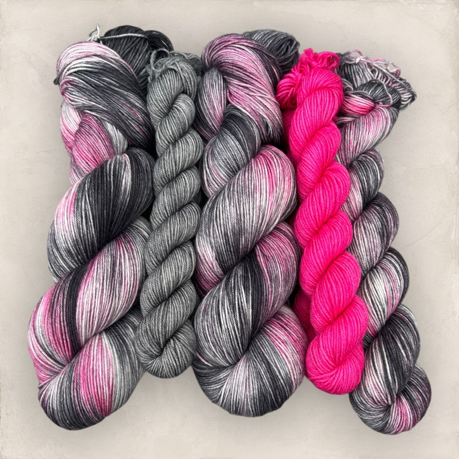 100g or 50g Skein - Midnight Blush - Deep pink with smoky grey and black
